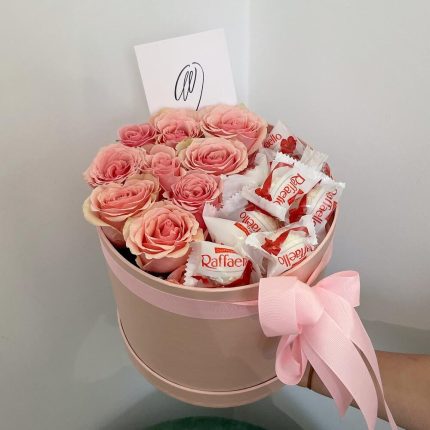 Розы со сладостями в коробке
