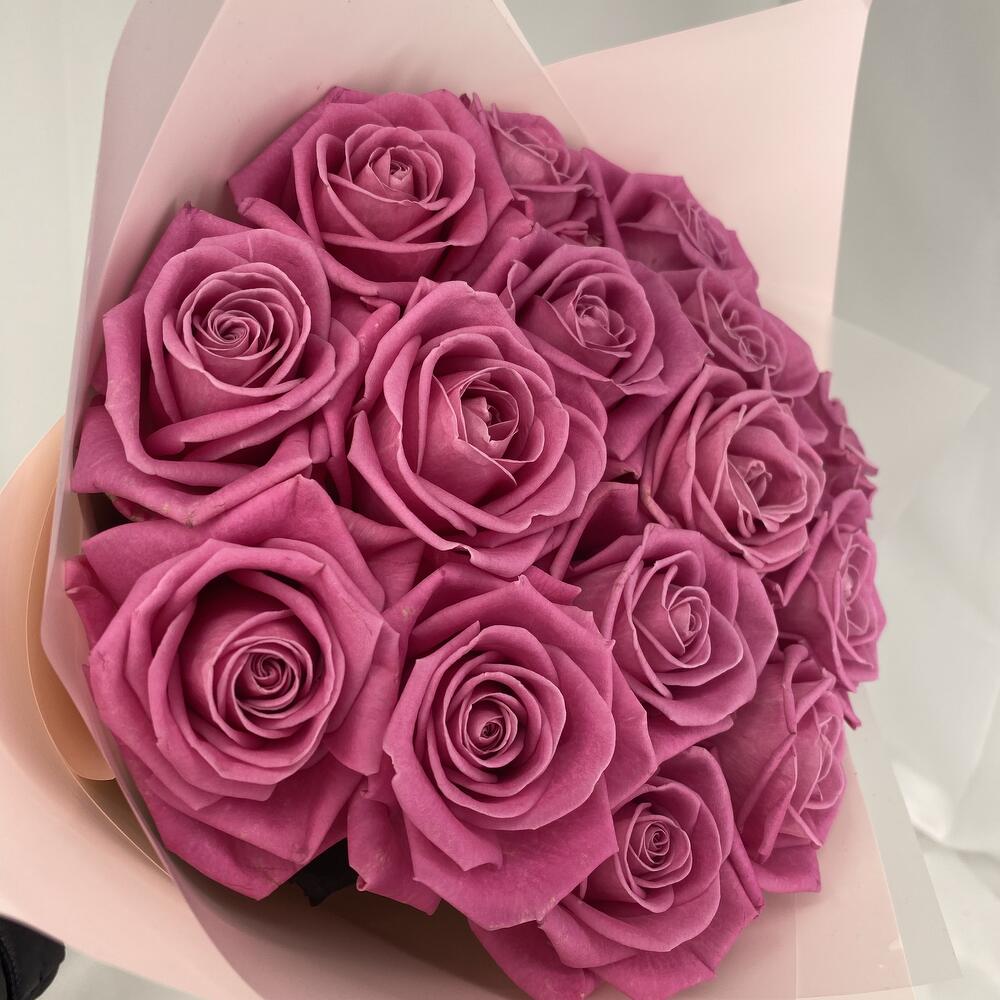 Роза – 15 шт.Упаковка – 3 шт.Атласная лента – 1 шт.