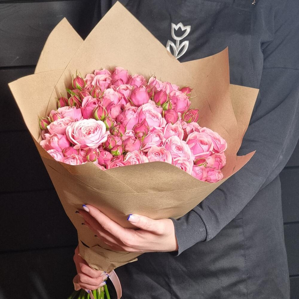 15 пионовидных кустовых роз в букете