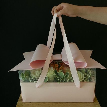 Эвкалипт – 2 шт. Роза – 15 шт. Коробка шляпная – 1 шт. Оазис флористический – 1 шт.