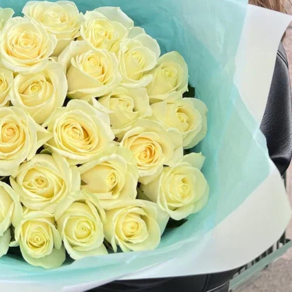 25 белых роз Кения с оформлением