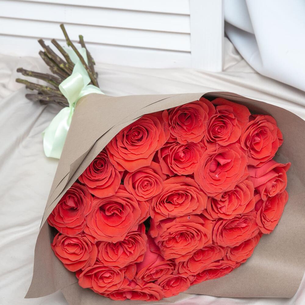 роза nina – 25 шт.Крафт-упаковка – 1 шт.Лента атласная – 1 шт.