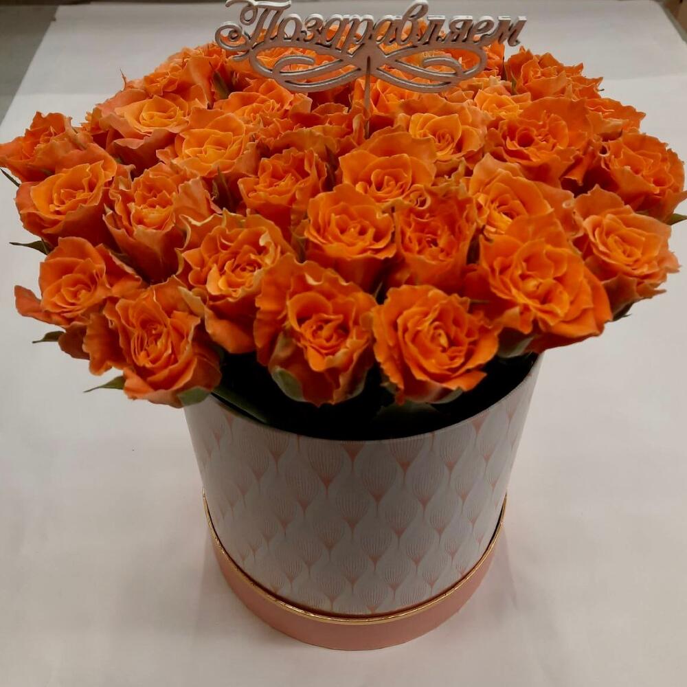 розы россии 40 см – 39 шт.шляпная коробка в ассортименте – 1 шт.Оазис флористический – 1 шт.