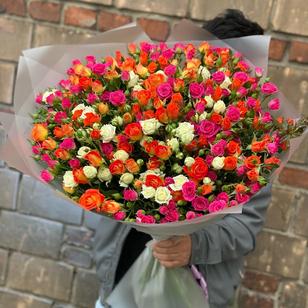 Кустовая роза – 51 шт.Лента атласная – 1 шт.Дизайнерская упаковка – 5 шт.
