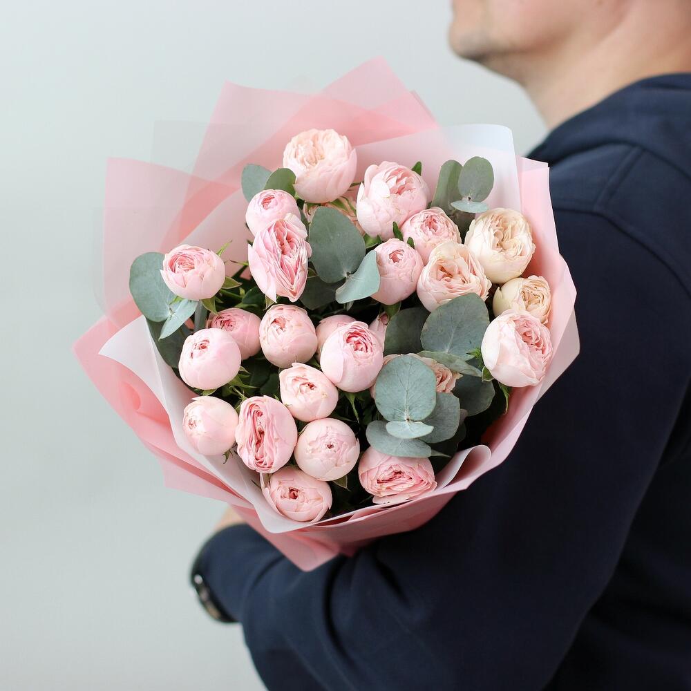 7 кустовых пионовидных роз мэнсфилд парк с эвкалиптом. Букет 22 KimFlo