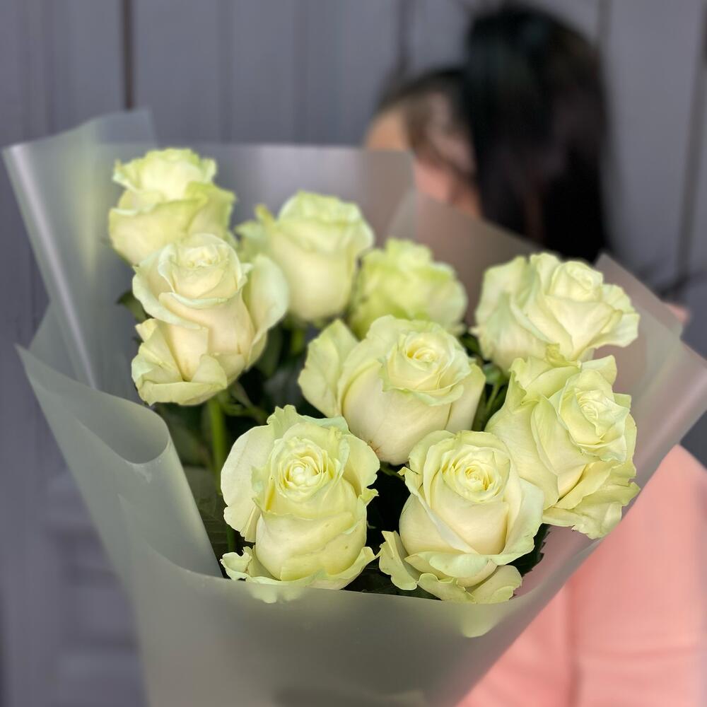 9 белых роз 50 см