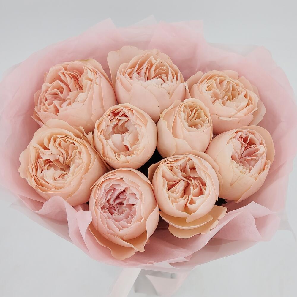 Роза пионовидная – 9 шт.Упаковка дизайнерская – 1 шт.
