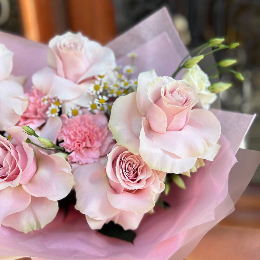 Категории: Гвоздики, Лизиантусы, Розы, Ромашки