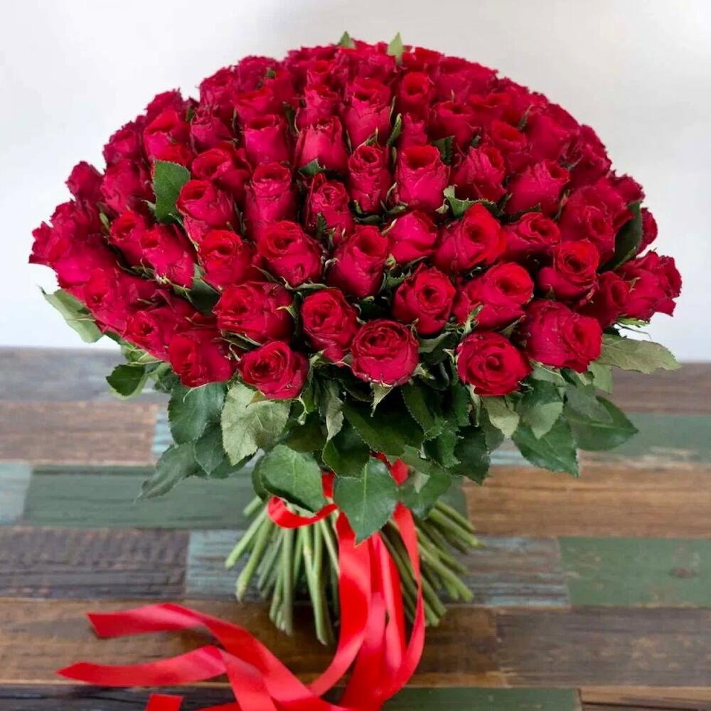 Букет 75 красных Роз 60см Эквадор
