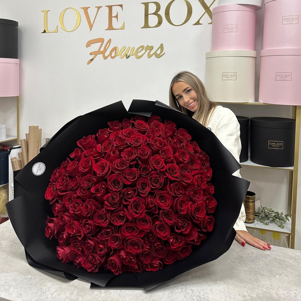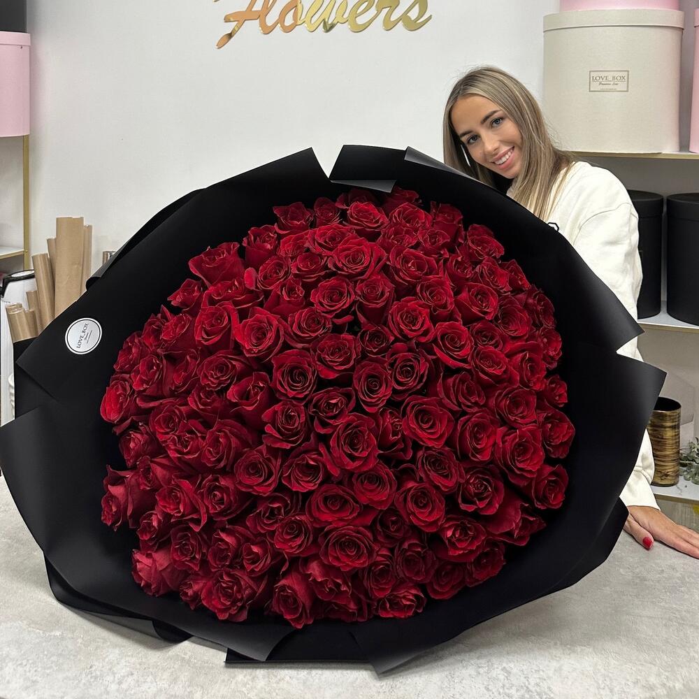 Букет из 101 премиальной розы Эквадор 80-90см
