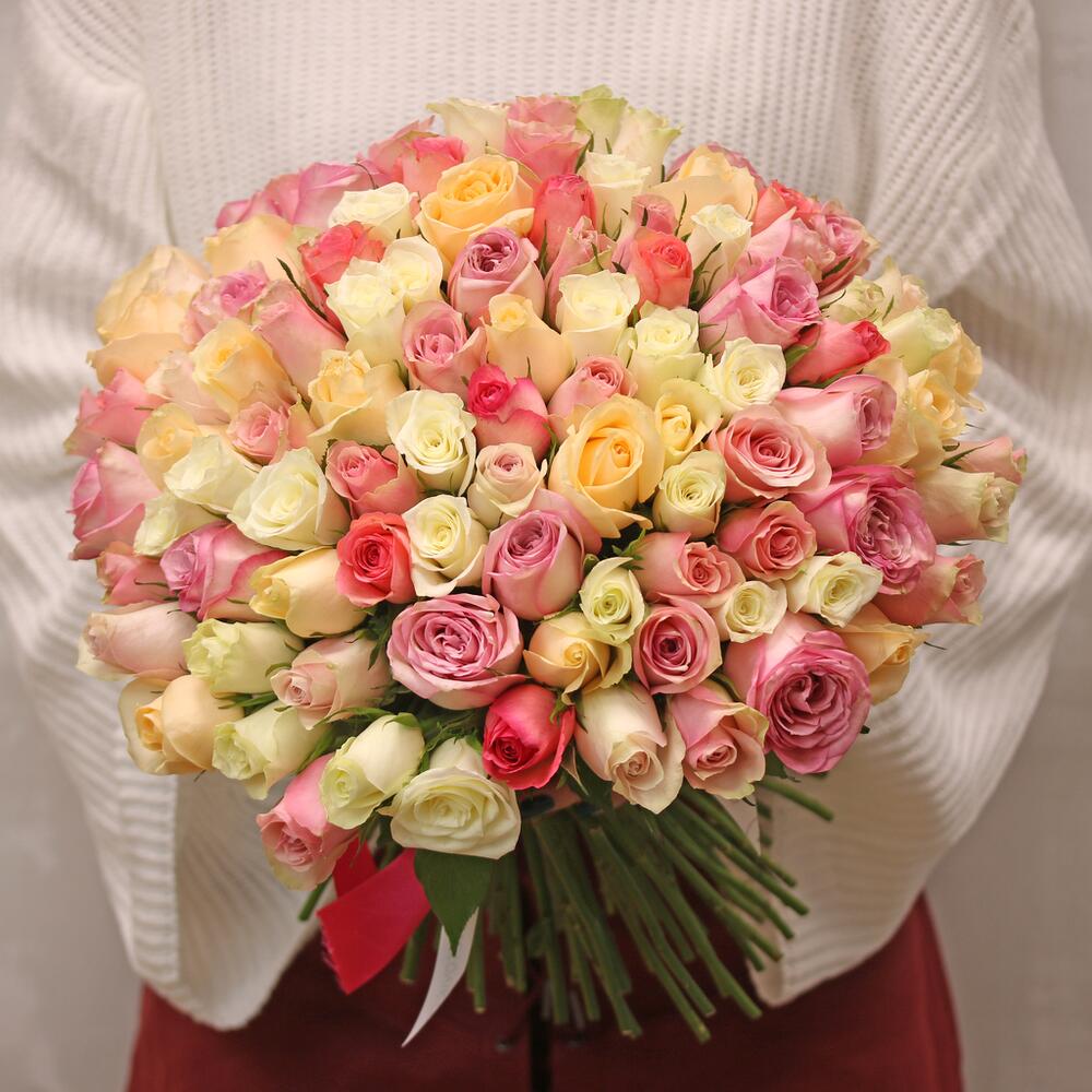 Букет из 101 розы нежный микс 35-40 см (Кения)