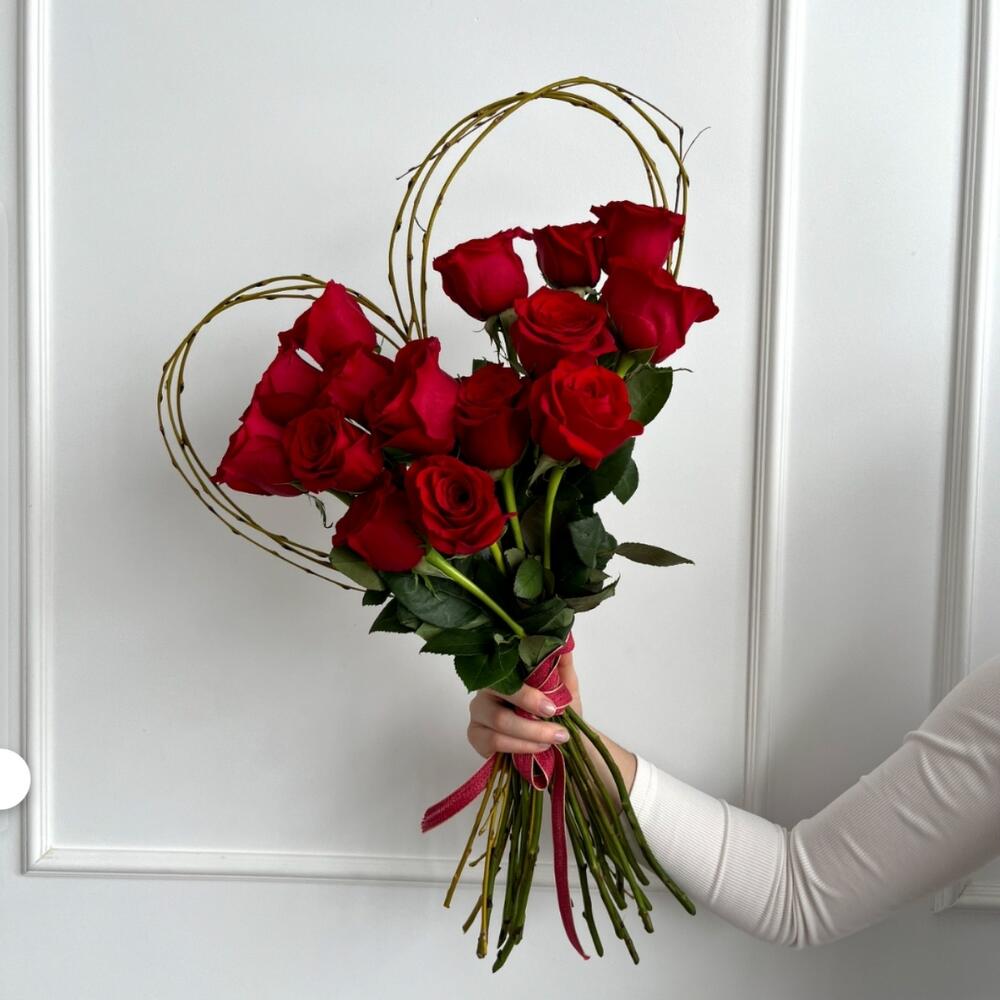 Букет из 15 красных роз "Сердечко"
