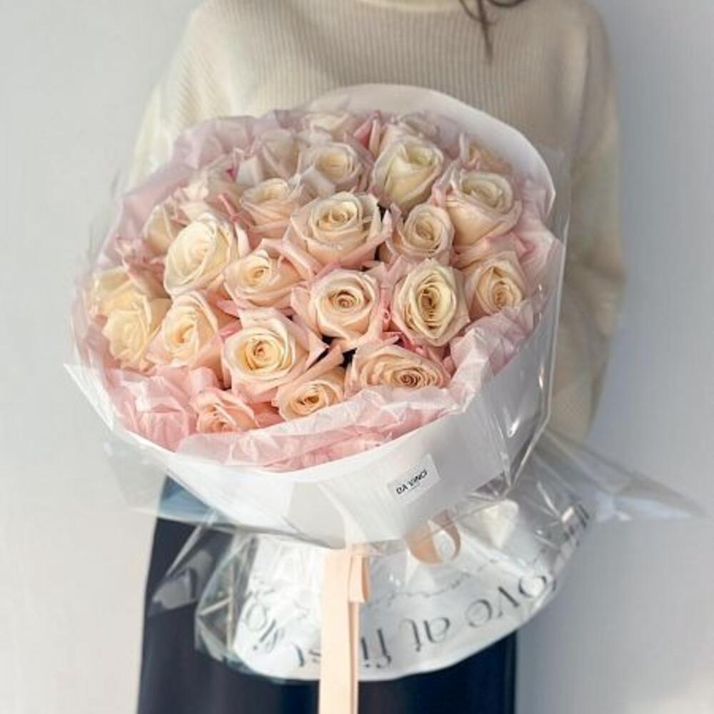 Букет из 25 нежных голландских роз в оформлении