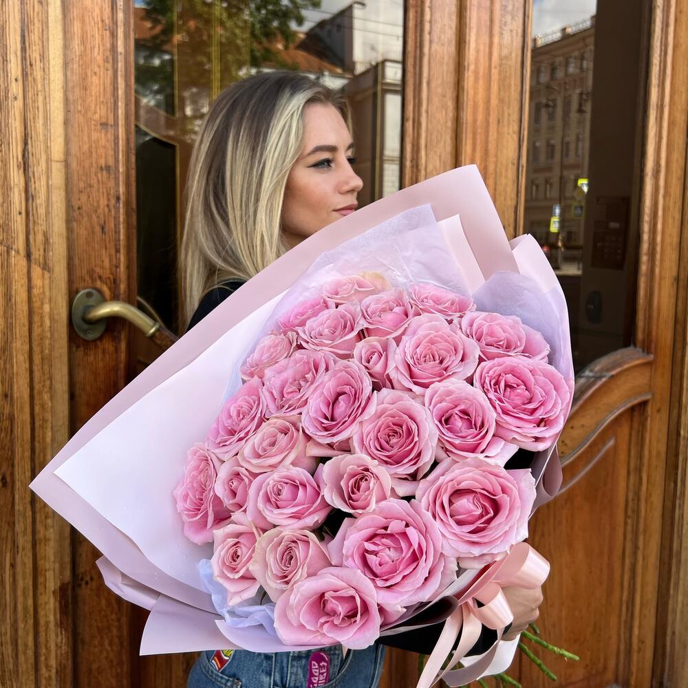 Букет из 25 розовых эустом (лизиантусов) в стильной упаковке "Аннэт"