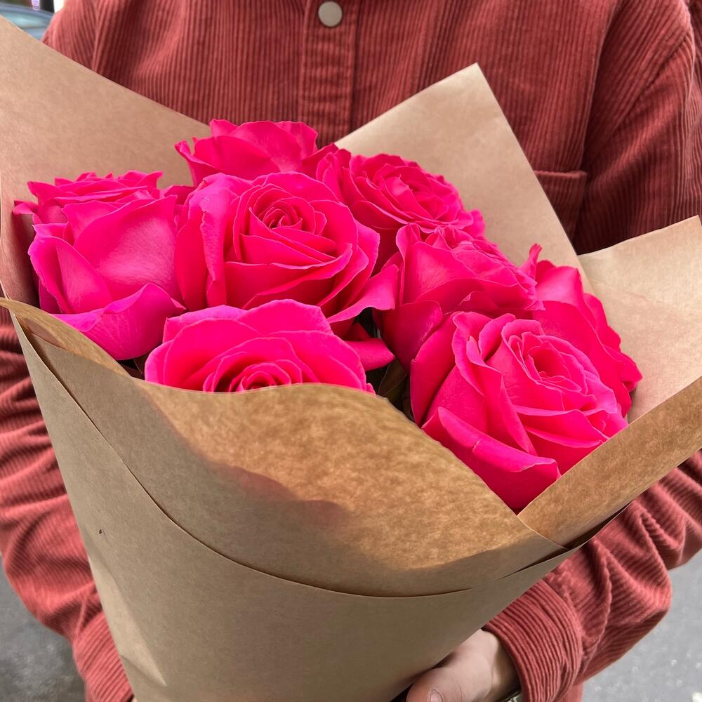 Букет из 9 розовых роз в крафтовой упаковке