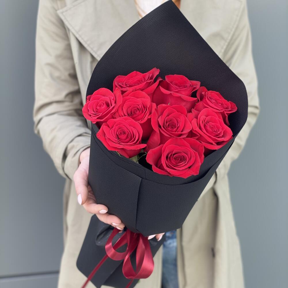 Букет из 9 красных роз в оформлении!