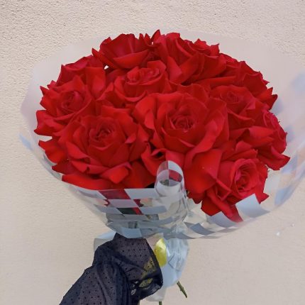 красная роза фридом – 9 шт. Оформление – 1 шт.