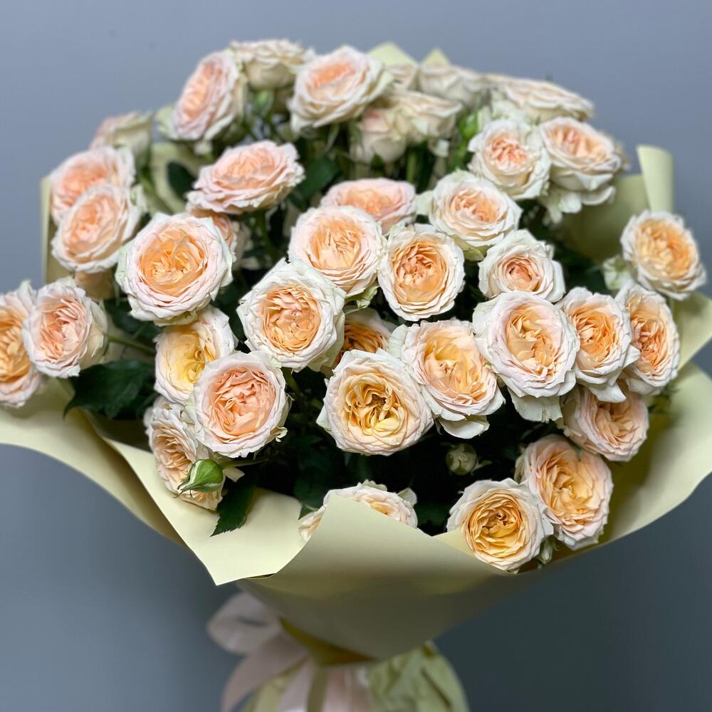 Лента – 1 шт.Роза кустовая – 7 шт.Оформление – 3 шт.