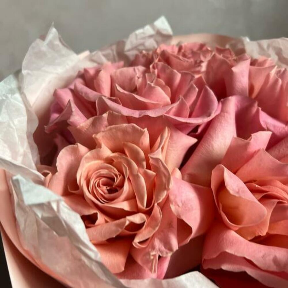 Одноголовая роза – 5 шт.декоративная упаковка – 1 шт.Атласная лента – 1 шт.