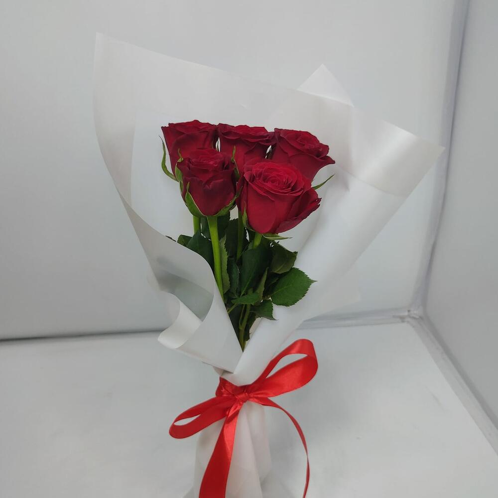 роза кения 40 см – 5 шт.Дизайнерская упаковка – 1 шт.