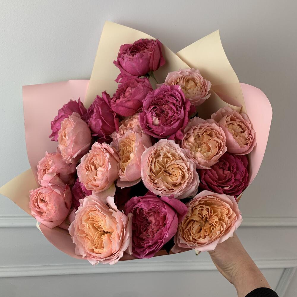Букет кустовые пионовидные розы Джульетта 40см