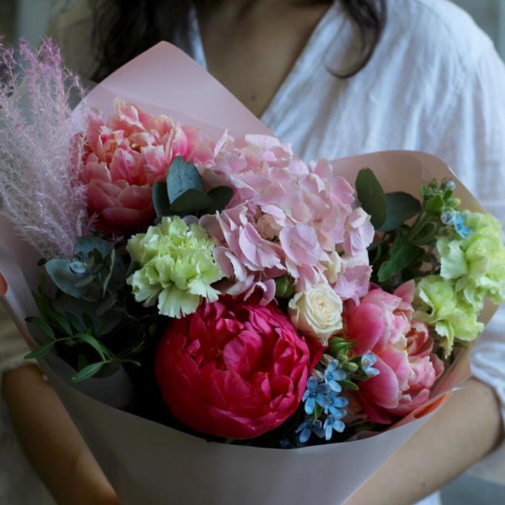 Категорий: Гвоздики, Гортензии, Кустовые розы, Пионы, Розы, Сухоцвет