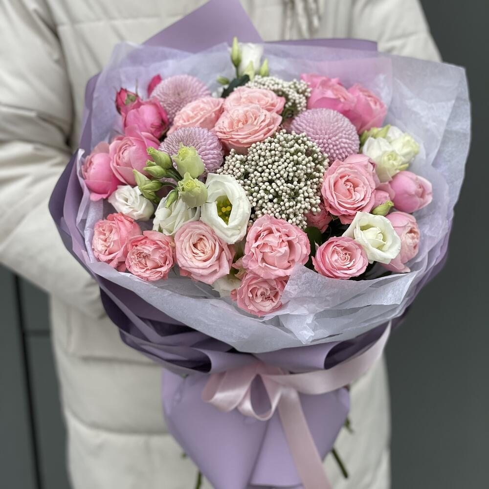 Букет Пудра из кустовой розы, эустомы и озотамнуса