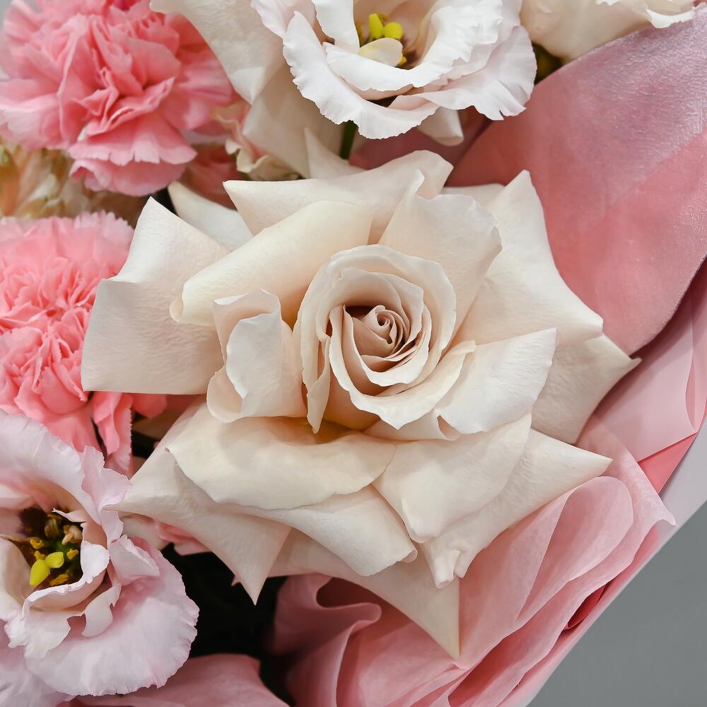 Категорий: Гвоздики, Кустовые розы, Лизиантусы, Пионовидные розы, Розы, Хризантемы