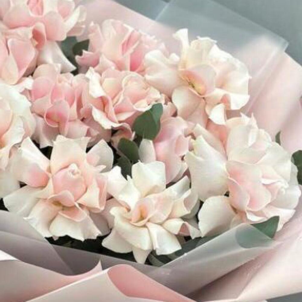 Букет с эустомой,пионовидными розами и гвоздикой