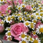 Роза кустовая – 5 шт.Матрикария – 10 шт.Упаковка дизайнерская – 3 шт.