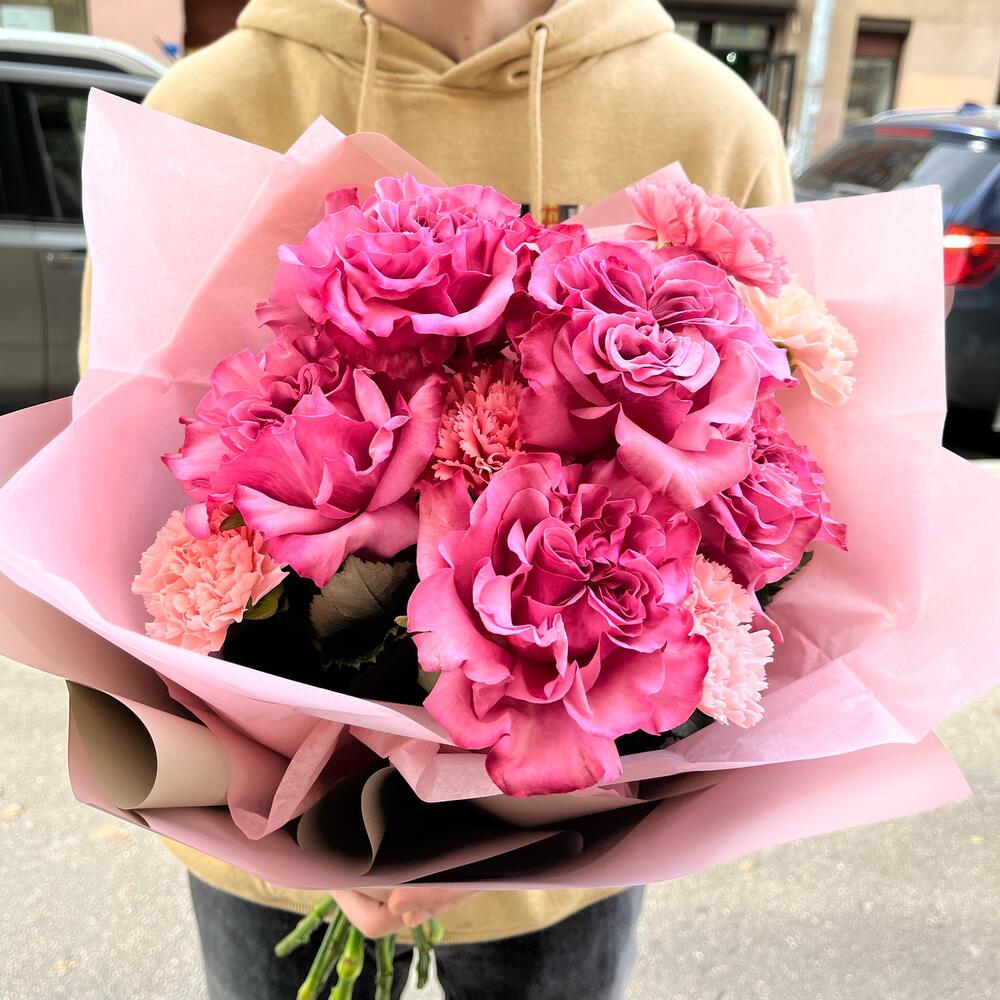 роза пионовидная кантри блю – 5 шт.диантус розовый микс – 6 шт.Упаковка дизайнерская – 2 шт.