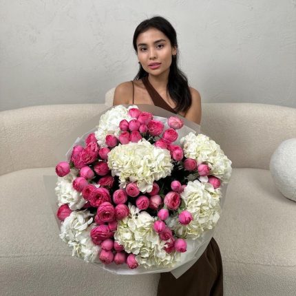 Сборный букет "EURO 3.4" состоит из 11 голландских роз, 4 голландских гортензий, 4 астильб, 5 лизиантусов и 5 веток клематиса в оформлении. Букет безмолвно может сказать обо всех Ваших чувствах, оставив лишь приятные воспоминания у получательницы. Выбрав букет от RAFALE, Вы скрасите день обладательницы букета и подарите ей незабываемые эмоции.
