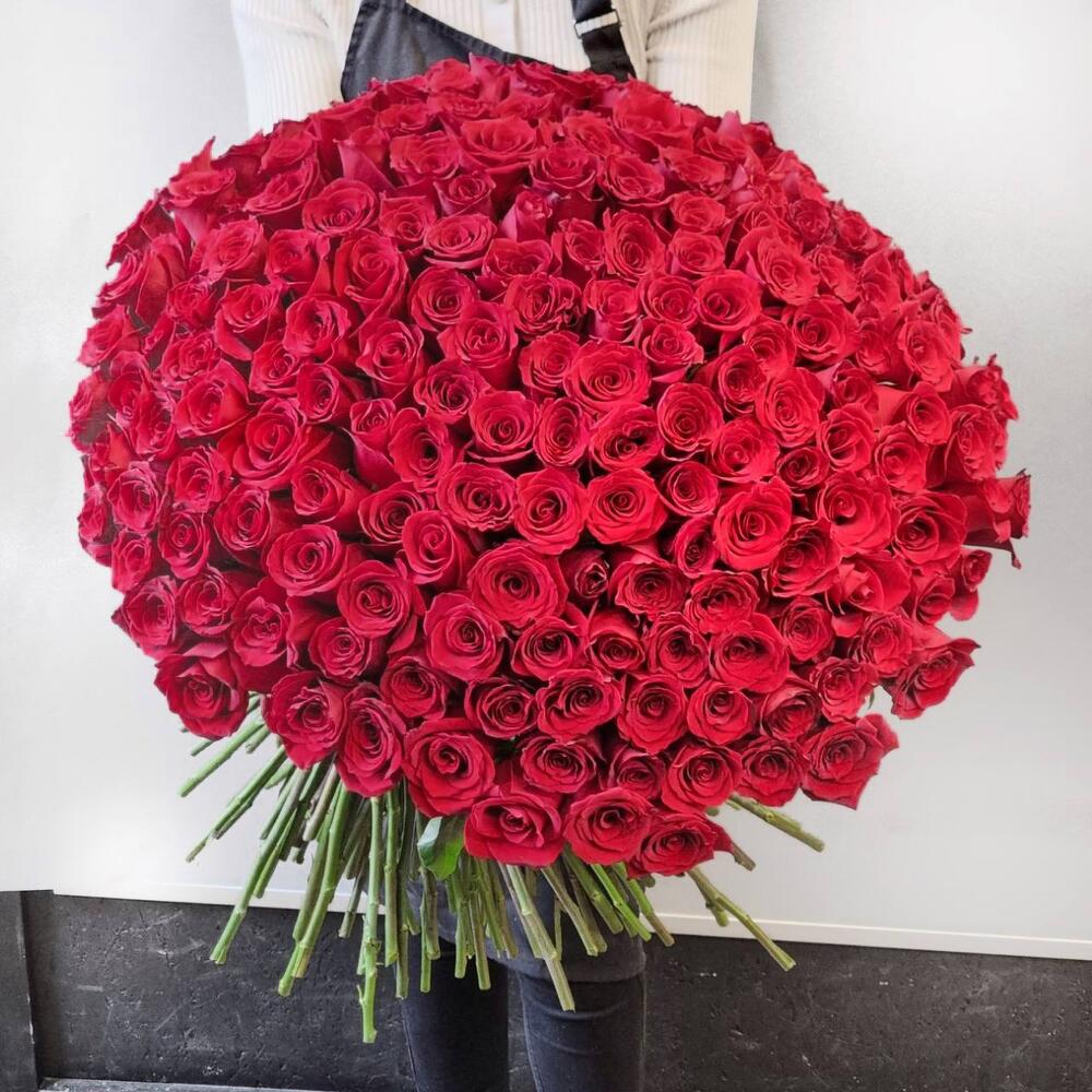 Лента атласная – 2 шт.Роза Эквадор 60 см – 250 шт.пленка прозрачная упаковочная – 1 шт.