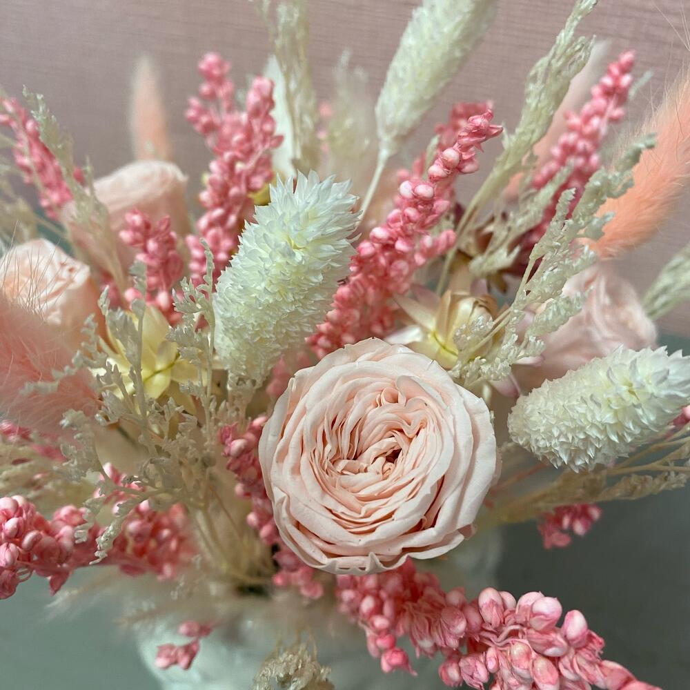 Композиция из стабилизированных роз, сухоцветов и злаков 20