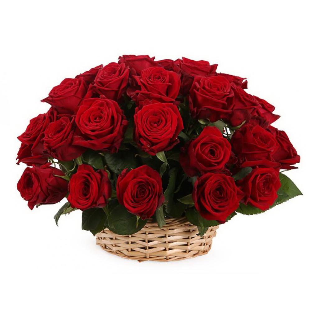 Корзина из 25 красных роз “Престиж”
