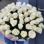 Корзина из белых роз Аваланж