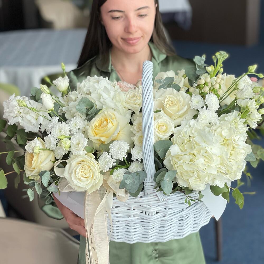 Корзина с цветами кремовая