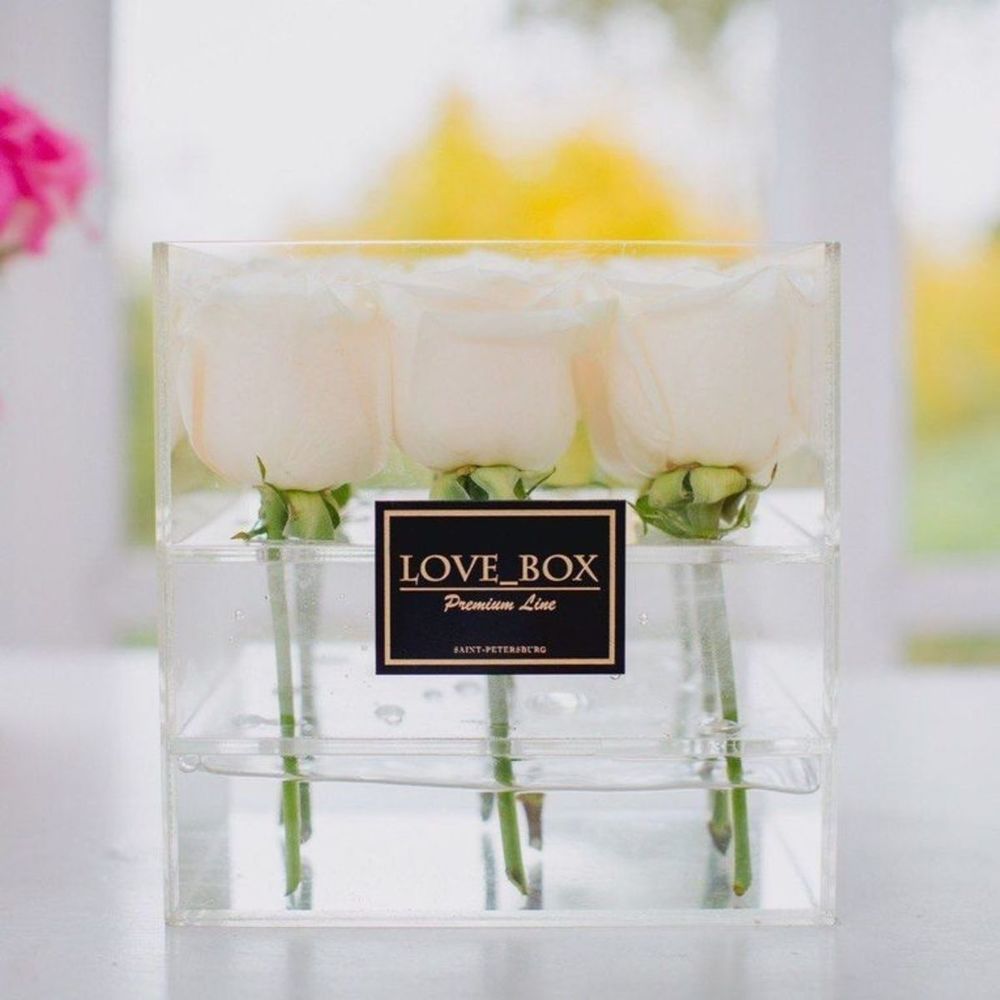 Роза эквадор кремовая или белая – 9 шт.Стеклянный куб standard – 1 шт.