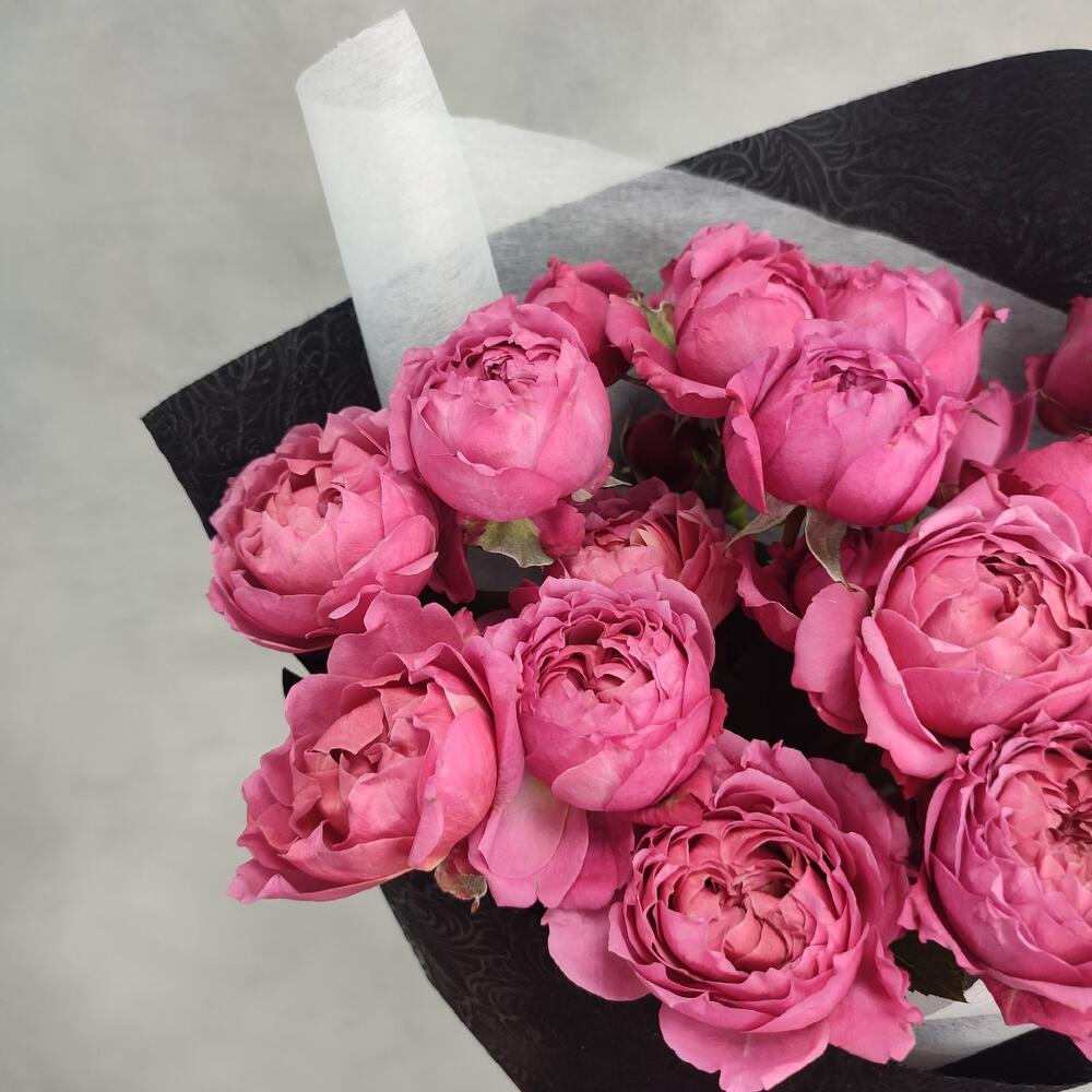 Упаковка дизайнерская – 1 шт.Пионовидная кустовая роза – 5 шт.