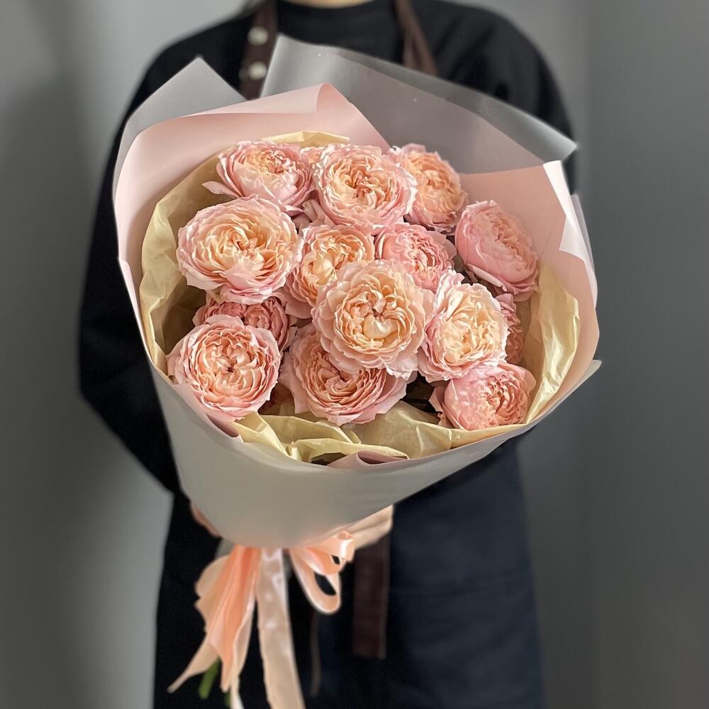 Упаковка дизайнерская – 1 шт.Кустовая пионовидная роза джульетта – 5 шт.