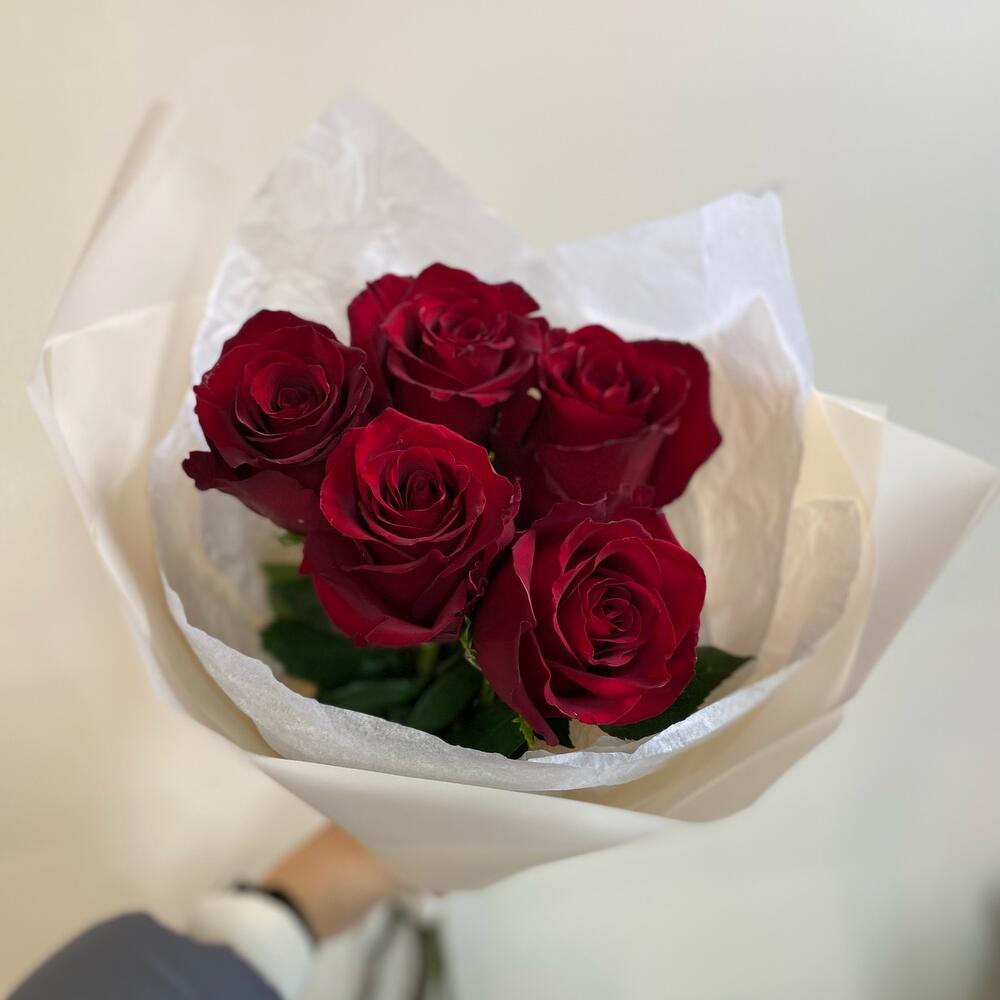 Монобукет из 5 красных роз