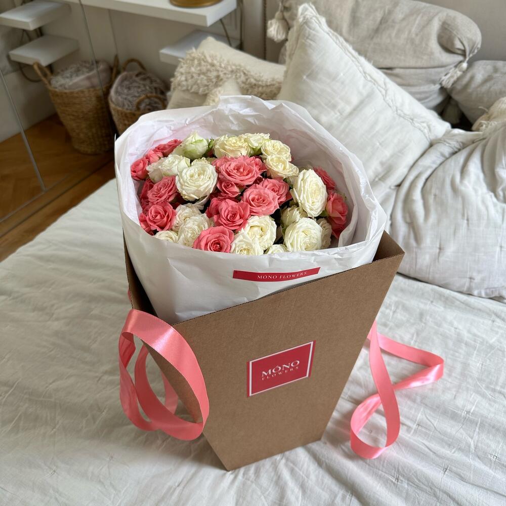 Кустовая роза – 20 шт.Упаковка дизайнерская – 1 шт.Транспортировочная коробка – 1 шт.Открыточка с вашими пожеланиями – 1 шт.