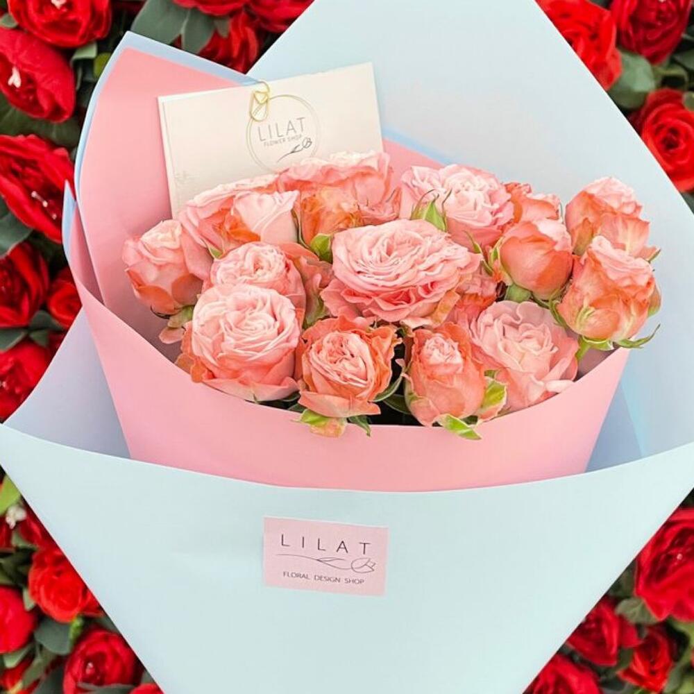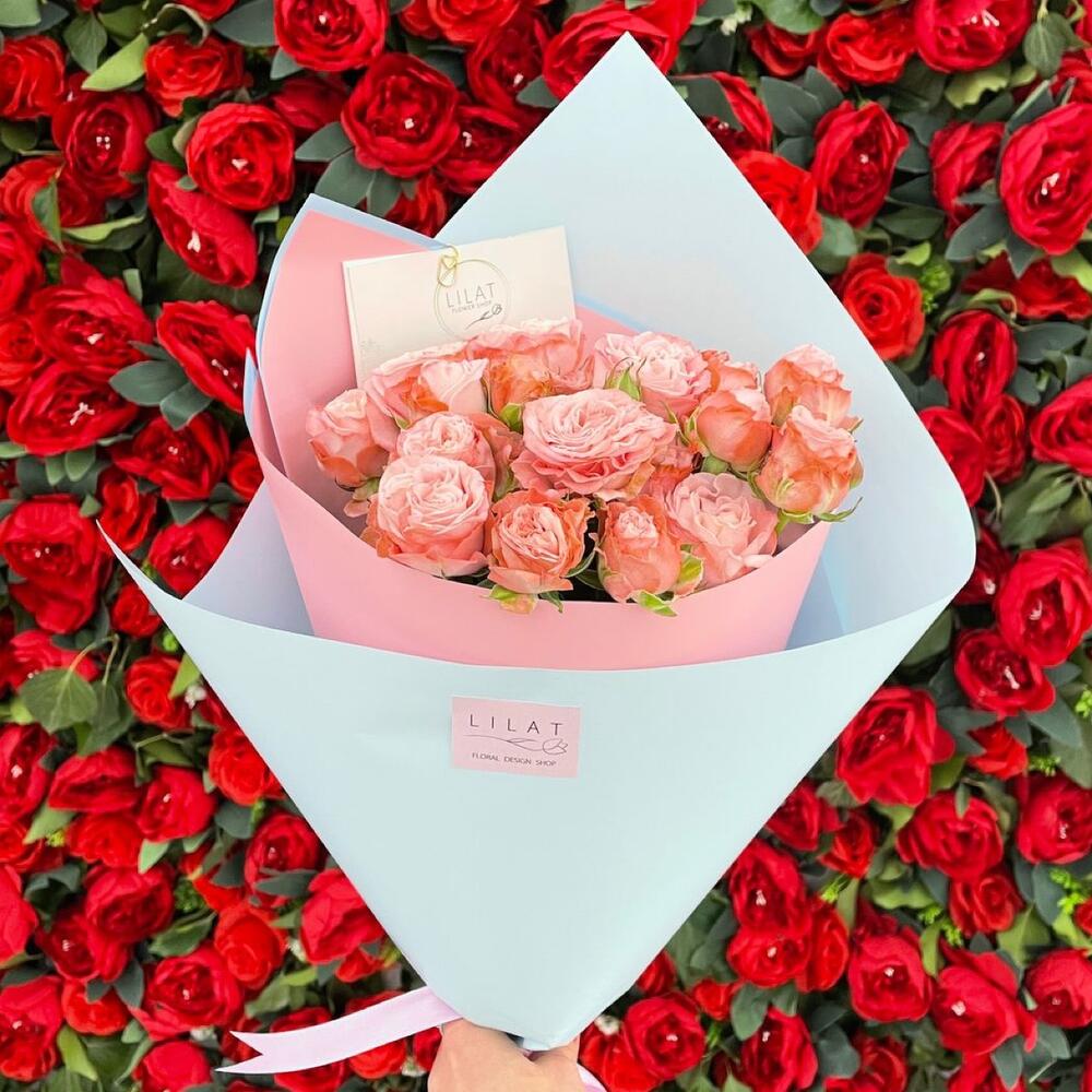 Букет розовых кустовых роз