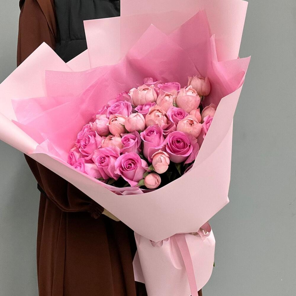 Альстромерии, Кустовые розы, Лизиантусы, Пионовидные розы, Розы, Ромашки