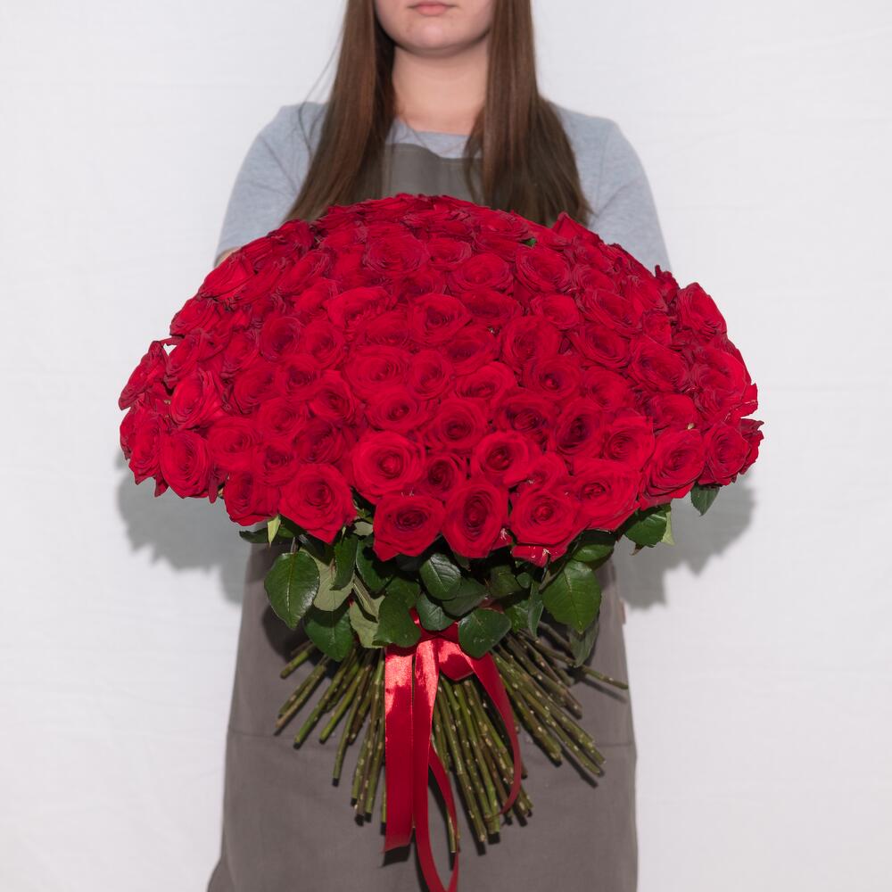 Роскошный букет из 101 красной розы. Букет 158 ALMOND ROSES