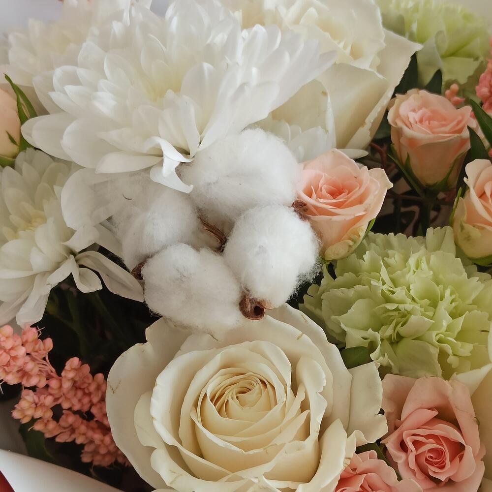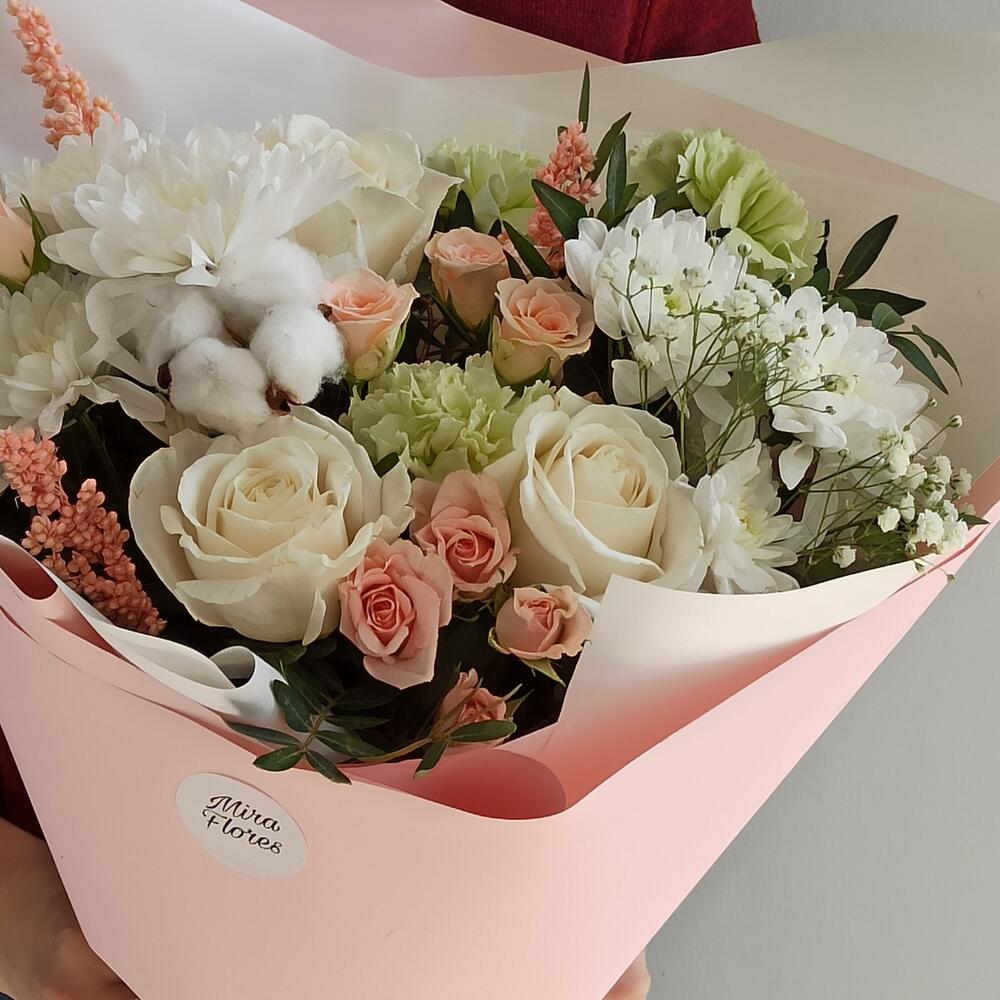 Гвоздики, Кустовые розы, Лизиантусы, Пионовидные розы, Розы