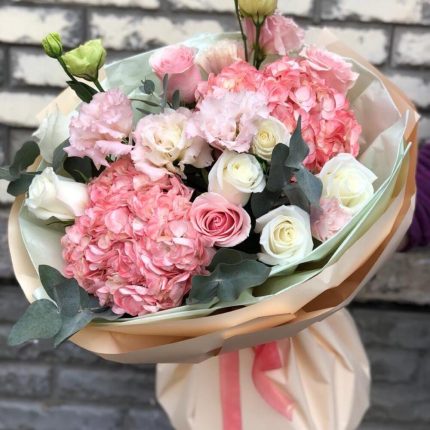 Гвоздики, Лизиантусы, Розы, Тюльпаны