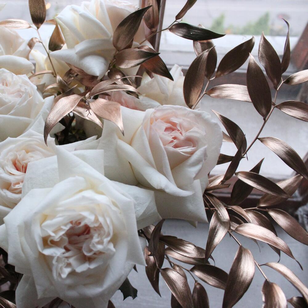 роза садовая white o hara – 17 шт.Рускус крашенный – 3 шт.