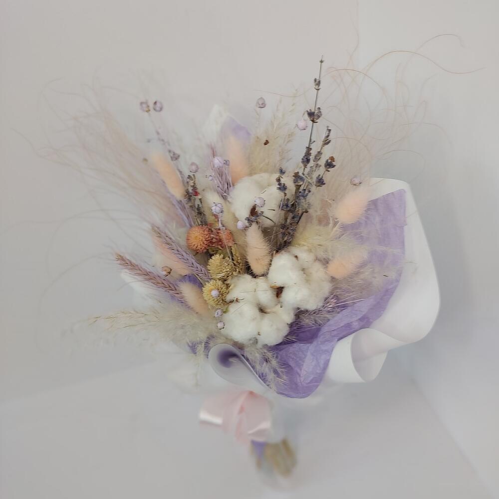 Хлопок – 4 шт.Лагурус – 9 шт.Ковыль – 2 шт.кортадерия – 4 шт.прочие сухоцветы – 15 шт.