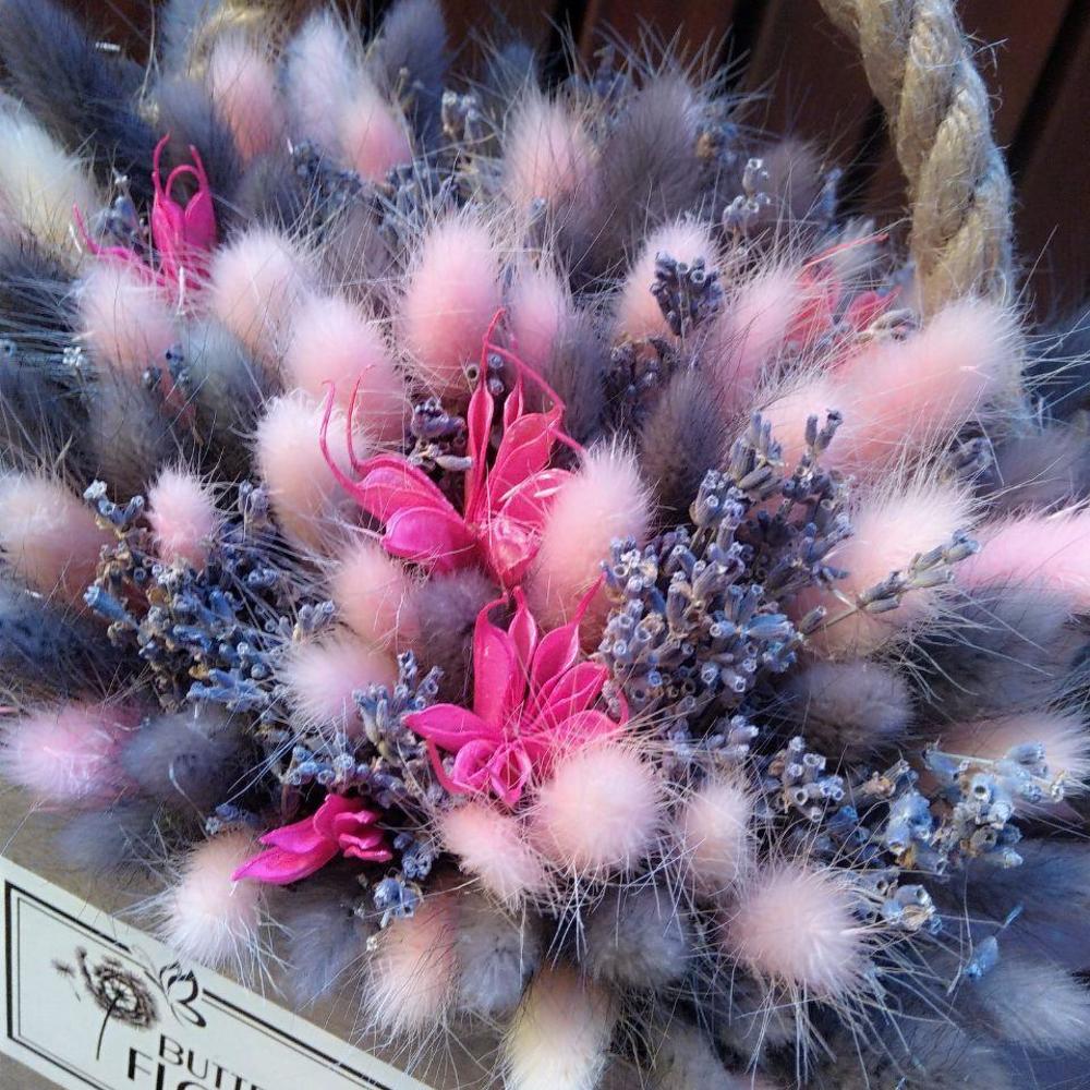 Букет из сухоцветов - лагуруса, лаванды и нигеллы в стильном деревянном ящике "Краски Майорки"
